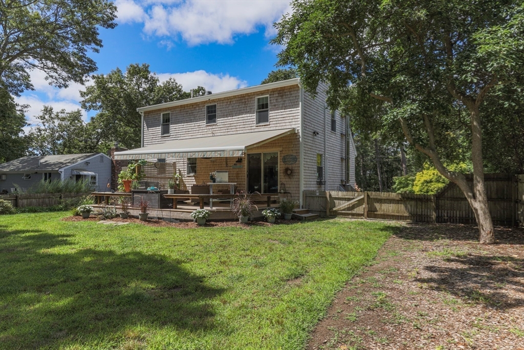 Year-Round Oasis Across from Ashumet PondDiscover the epitome of Cape Cod living in this meticulously maintained Mashpee home. Situated directly across from serene Ashumet Pond and boasting deeded beach rights to both Ashumet and John's Ponds, this property offers an unparalleled opportunity for aquatic recreation and relaxation.Step inside this inviting 3-bedroom, 2-bathroom residence and be greeted by a spacious living room adorned with cathedral ceilings and warm hardwood floors. The open floor plan seamlessly connects the living room to the dining area and updated kitchen, complete with granite countertops and a gas stove. A convenient first-floor bedroom and full bathroom with laundry area provide added versatility. Upstairs, discover two generously sized bedrooms and the primary suite, which offers ample closet space and the potential for an ensuite bathroom. The partially finished basement provides extra accommodations for guests.Outdoor living is a dream come true on the