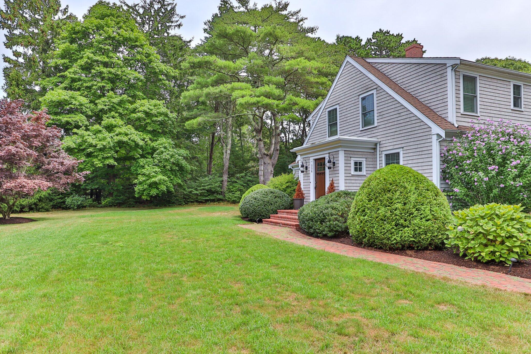 A lovingly cared for and maintained home on a perfectly situated lot with the Charm of Cape Cod Originally built in 1945, rebuilt 2012-13. and updated in 2017. 1/2 mile from Wimpys Restaurant and 1 mile from Dowses beach. Located upstairs large master bedroom with spacious walk-in closet, master bath has new claw foot tub and shower. 2nd upstairs bedroom and 1/2 bath on 2nd floor. Bedroom on 1st floor with another toilet, sink and shower. 4th bedroom in detached garage for privacy with toilet, sink and shower. Central Air conditioning and gas fireplace in living room. Oak floors, tiled baths, bath sinks are bowled. Granite counters, Jen Air appliances. White cabinets. 3 seat bar. Large pantry closet. Tiled backsplash. Pot filler. Sunroom leading to brick patio. Professionally landscaped. Brick Firepit. 2 car detached garage with storage above. House cellar full. Town Water with Rhino whole home water filter and conditioning system Aquasana 2017, not in use. New Main water line and Outdoor Shower lines 2022. American Standard, 2012, Condensate pump and overflow tube replaced 10/22/20, Serviced February 2/8/22 and CO 2 checked, On Demand Navien Hot Water 7/20/12, Honeywell Zone