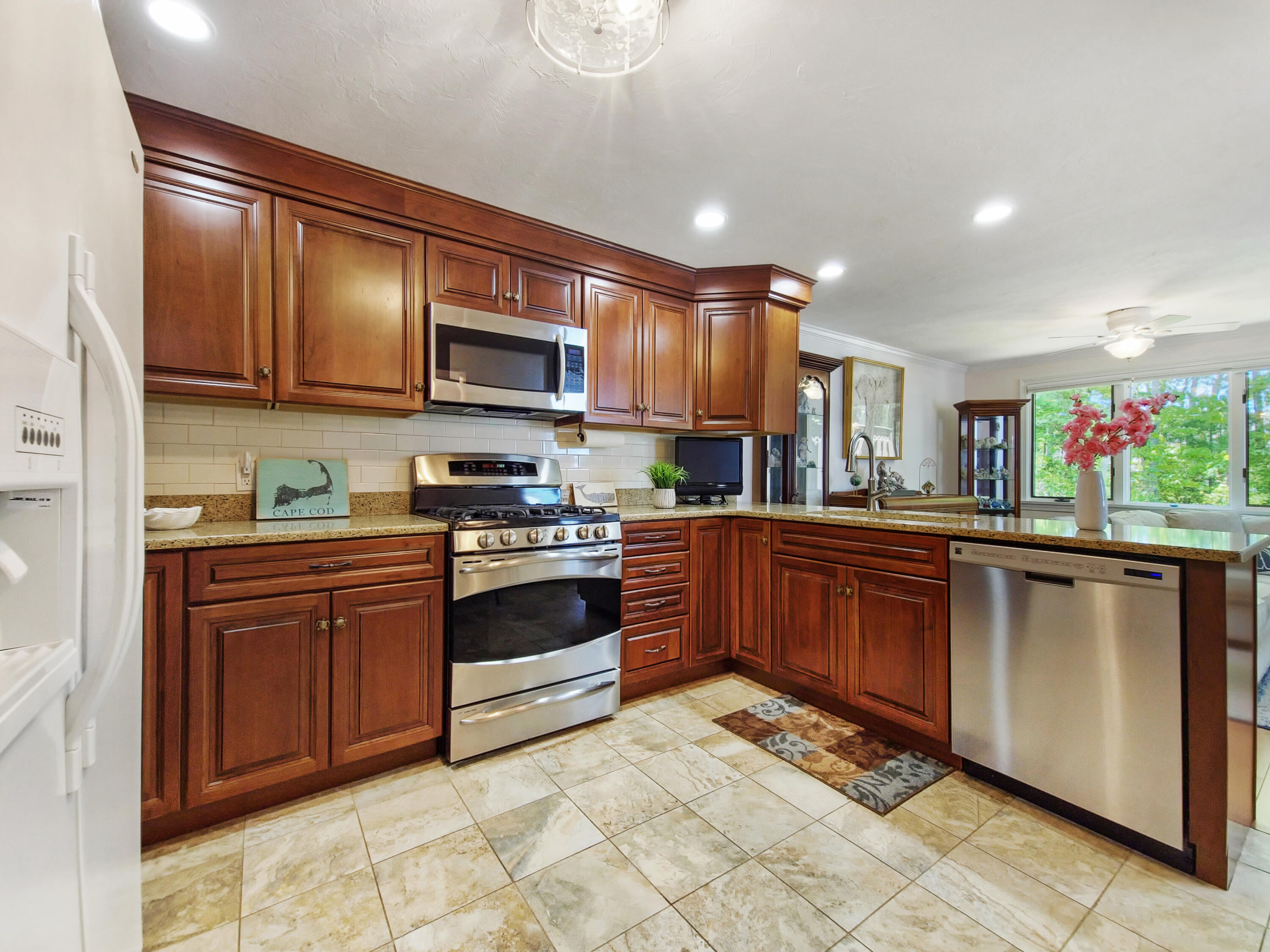 Welcome to Southport on Cape Cod, an exclusive 55+ Community that offers not just a home, but a lifestyle. Enjoy amenities such as 2 heated pools (indoor & outdoor), a clubhouse, fitness center, tennis courts, golf course, and more. This lovely unit features a lovely kitchen with custom cherry cabinetry, Silestone quartz countertops, recessed lighting, ceramic tile, and stainless steel appliances. The first floor includes a primary bedroom with a spacious closet, a full bath with Silestone quartz countertop, a half bath, laundry, and a living/dining room with a cathedral ceiling and gas fireplace. The second floor boasts a second primary bedroom, an updated full bath, a spacious closet, a TV room with a skylight, and an open office area in the loft. Beautiful cherry hardwood floors adorn the dining/living room and primary bedroom, with engineered wood floors throughout the upstairs. Additional features include a private back deck, 1-car garage, a full basement, and central air.